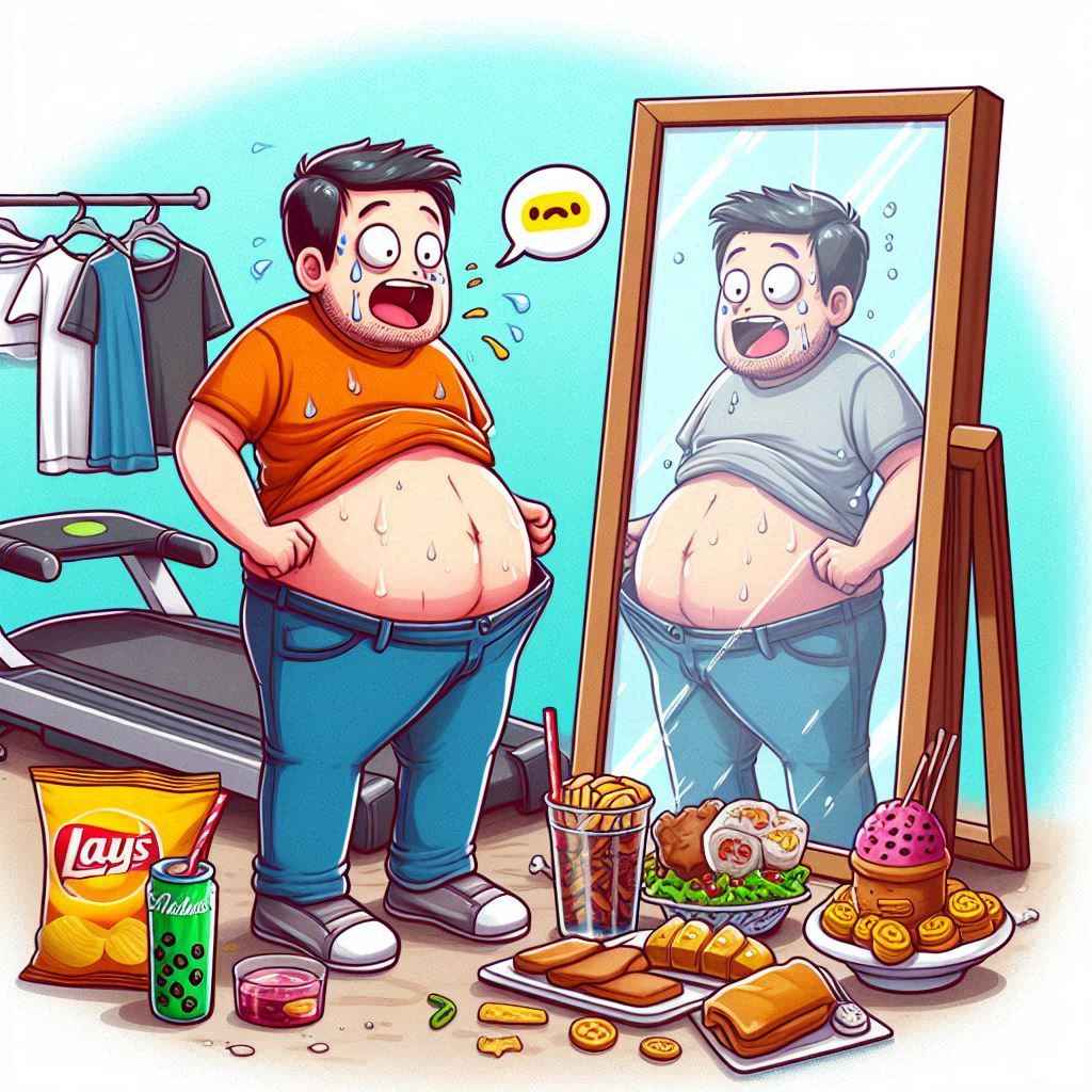 “Udahlah, bro. Mungkin emang ini takdirku. Perut buncit itu simbol kemakmuran!”